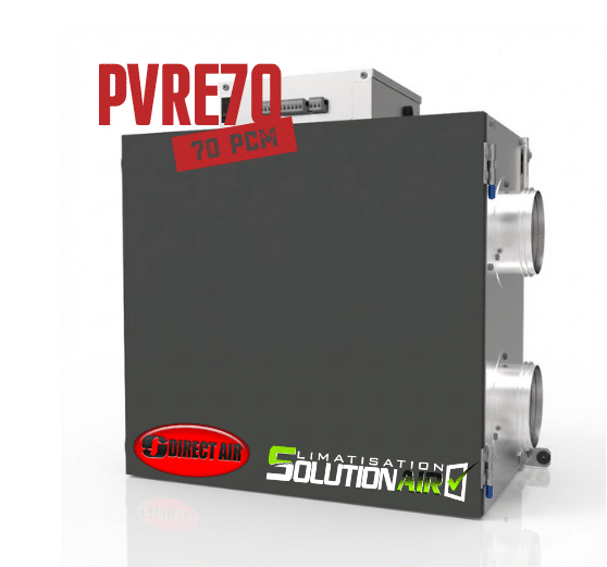 The Direct Air PVRE70 Air Exchanger has a slim profile. It adapts to tight spaces such as condos. Indeed, its capacity of 70 CFM is sufficient for small areas. In fact, Direct Air manufactures this energy recovery ventilator (ERV). It renews the stale air continuously. Therefore, it represents the ideal solution for renovation. This means that the mechanical space required is minimal.